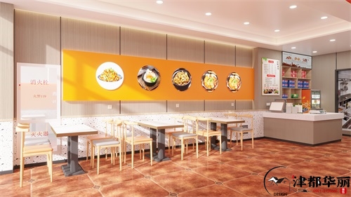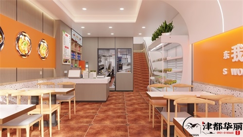 本次分享的是銀川餐廳裝修設(shè)計(jì)案例,得益于“高頻食用、食材豐富多樣”的品類優(yōu)勢(shì),如今餐廳已成為熱門的小吃快餐品類之一,一直以來(lái)都深受消費(fèi)者喜愛。在消費(fèi)升級(jí)的背景下,人們更愿意為場(chǎng)景消費(fèi)而買單,從簡(jiǎn)單的味覺、口感的需求,升級(jí)到對(duì)飲食文化、環(huán)境消費(fèi)的追求。餐廳裝修,符合自身定位、突出品牌特色和文化才更好,而不是一味著追求奢華與。色彩搭配是餐廳環(huán)境氛圍的重要因素,不同色彩對(duì)人的心里和行為產(chǎn)生不同的影響。橙色有激勵(lì)的效果,尤其快餐,在空間氣氛設(shè)計(jì)上,使用暖色調(diào)搭配,有利于提高翻臺(tái)率。本案餐廳設(shè)計(jì)以巧、新、特取勝,在原有基礎(chǔ)上,通過一些細(xì)節(jié)來(lái)有效傳達(dá)品牌的獨(dú)特文化,獨(dú)特的餐具、圖文并茂的菜單等,都提高消費(fèi)者欲望。